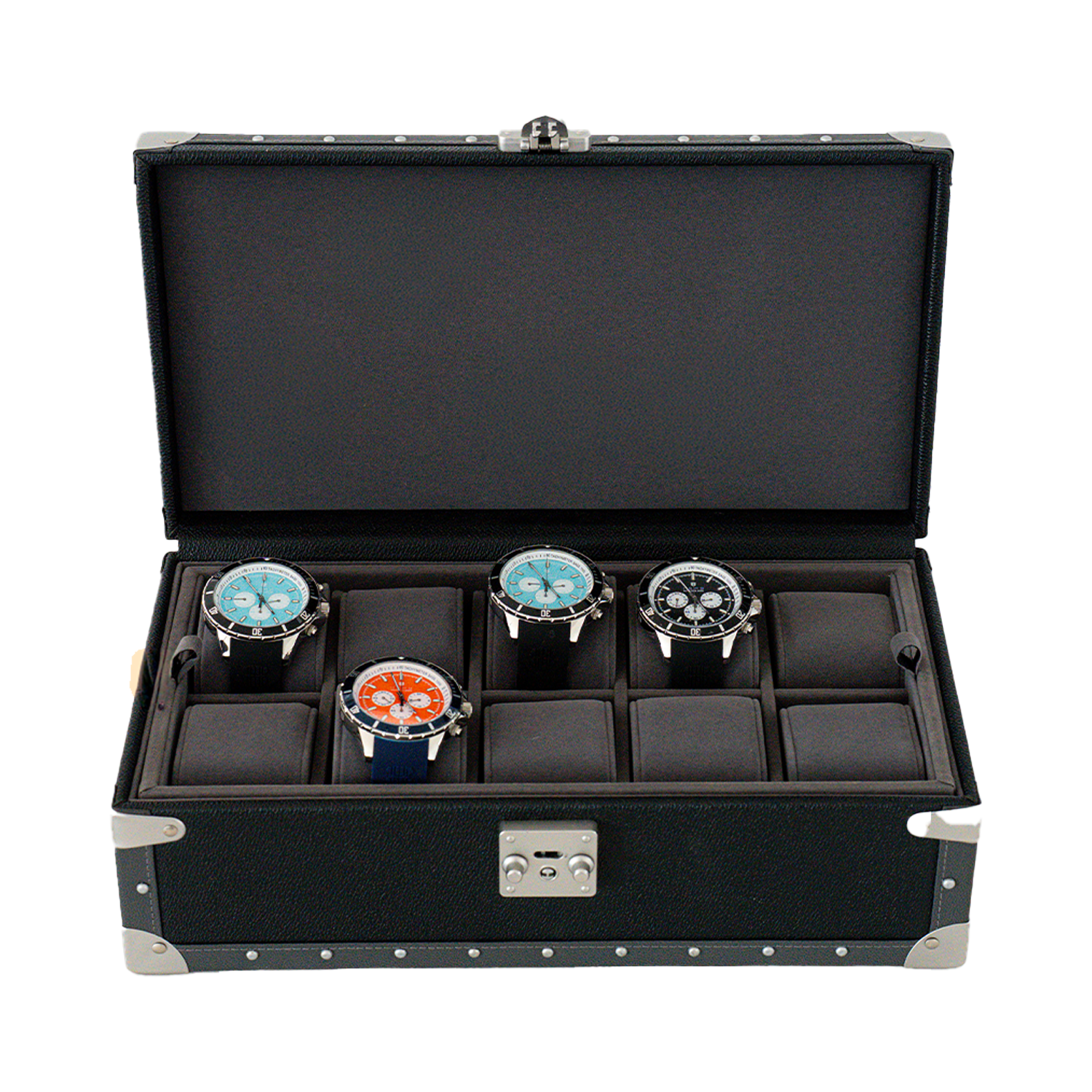 Das HERB WATCH CASE überzeugt nicht nur optisch: Zehn Uhrenkissen in perfekter Größe bieten Platz für deine gesamte Sammlung. Das Sicherheitsschloss lässt sich bequem mit zwei Fingern öffnen und sorgt dafür, dass deine Uhren sicher verwahrt sind.
