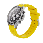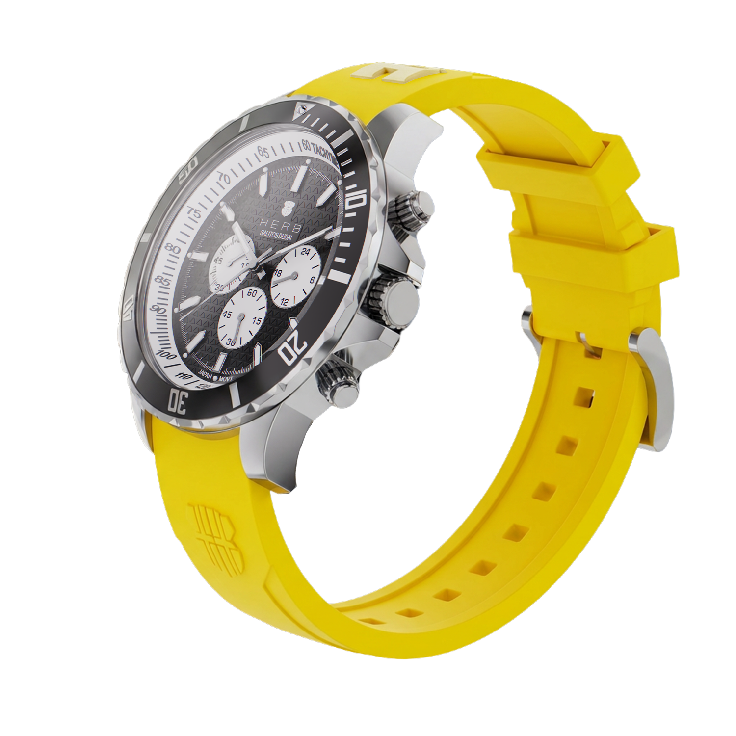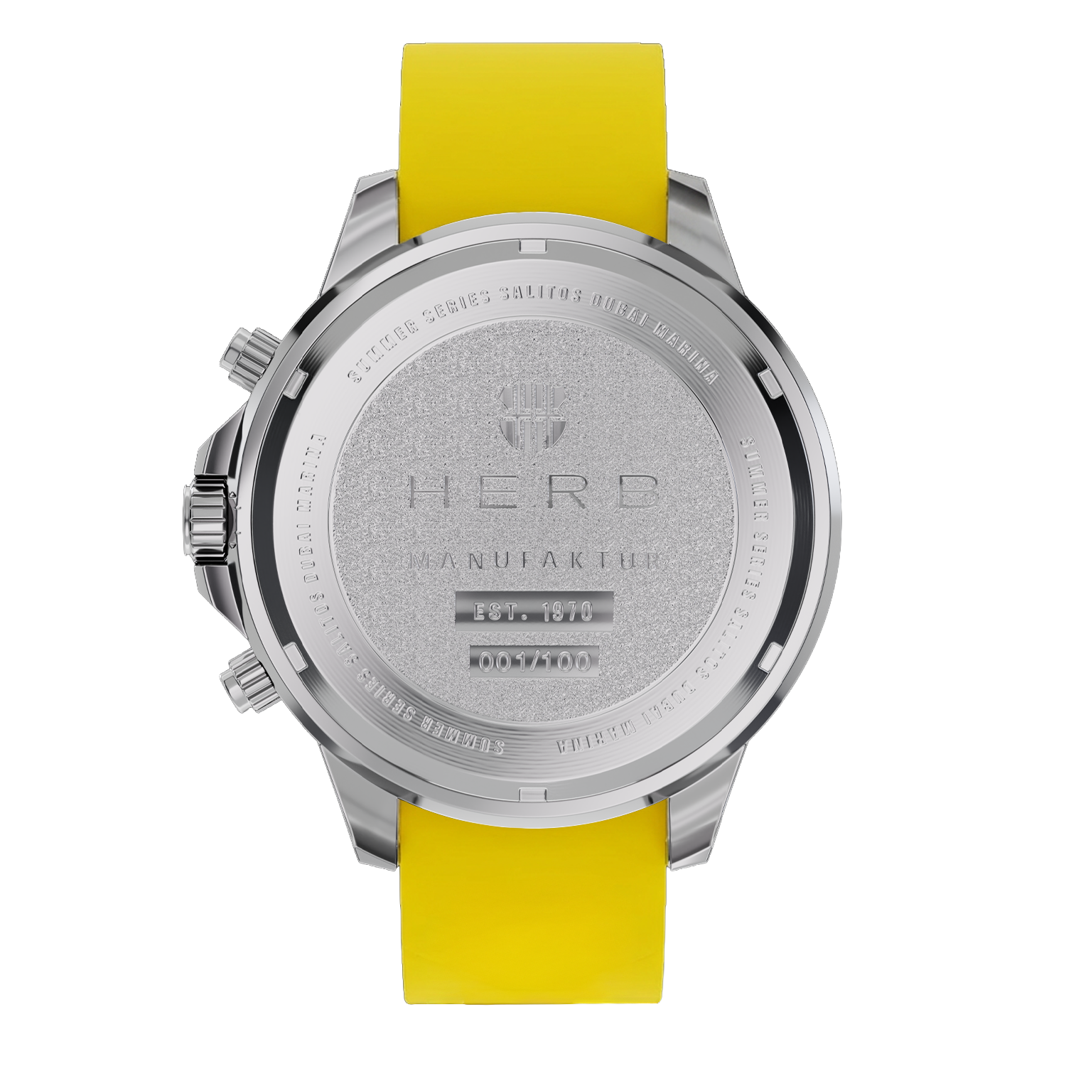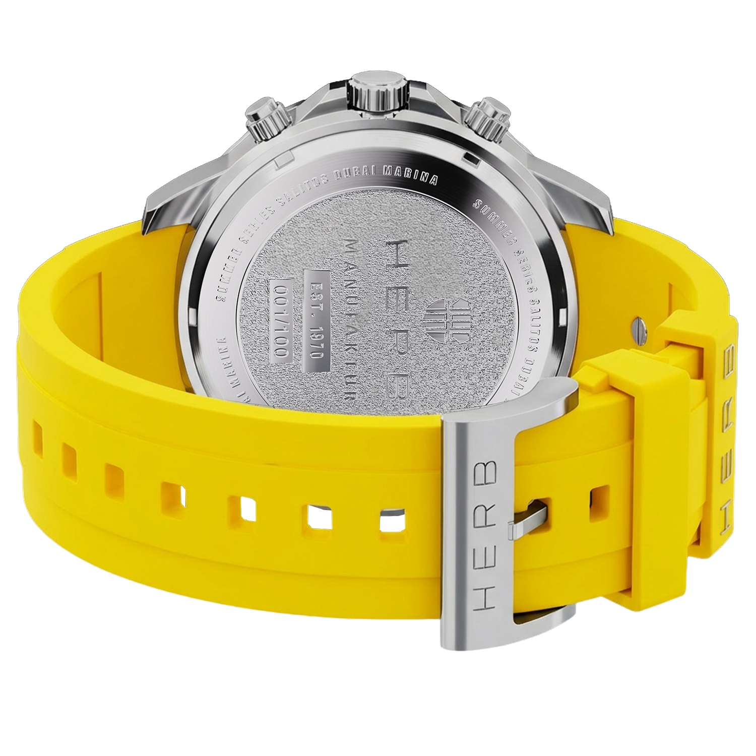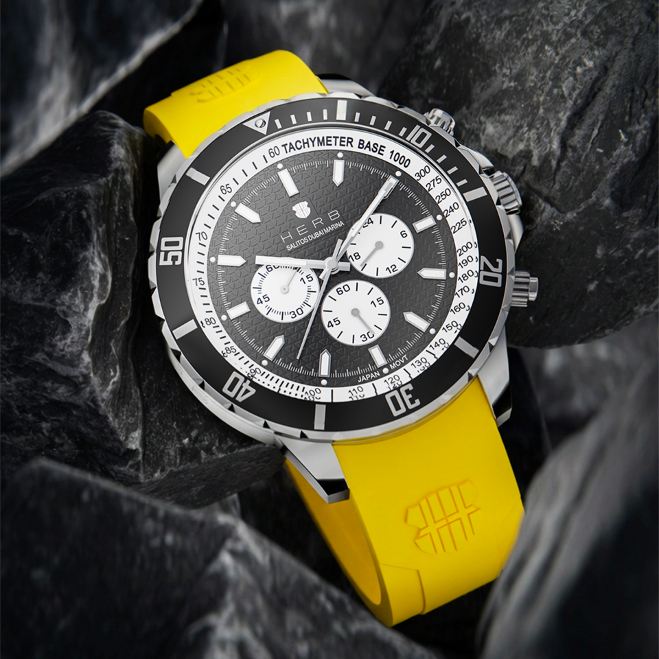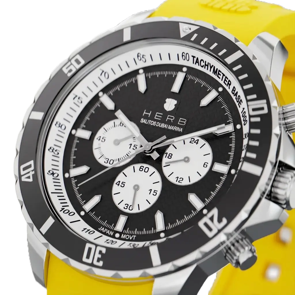 Die „Dubai Marina – Sunrise Edition“ überzeugt mit einem präzisen Quarz-Uhrwerk und einem hochwertigen Uhrengehäuse aus Edelstahl mit edler Prägung. Ihre farblich abgesetzte, drehbare Lünette verleiht ihr sportliche Raffinesse, während das robuste, kratzfeste Saphirglas für langanhaltende Klarheit sorgt. Besonderes Highlight ist das sportliche Armband aus weichem Silikon in der Sunrise-Farbgebung mit stilvollem Wappen-Embossing. Es garantiert hohen Tragekomfort und ist so leicht, dass es kaum spürbar ist.